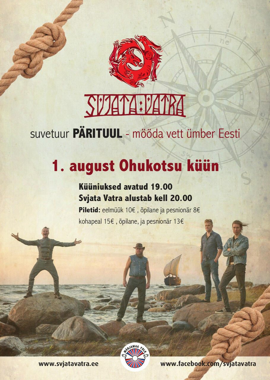 Svjata Vatra püüab tuule purjedesse ja teeb sel suvel Eestile tiiru peale peamiselt veeteed mööda. Aga üks imeline kontserdipaik, Ohukotsu küün, toob meid ka sisemaale. Ohukotsu küüniga seob Svjata Vatrat eriline au - olime esimene ansambel, kes selle avamisel pulmalistele mängis. Seega, tulge Pärituules Svjata Vatra kontserdile.